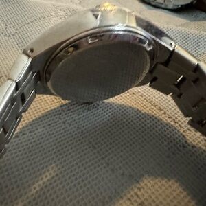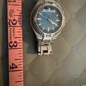 Stylish Fossil watch in silver with a classic design. This watch has some wear on it. It does need a new battery and a good polish as reflected in the price. See images for details.