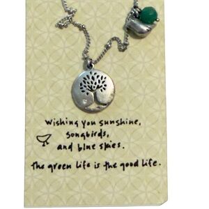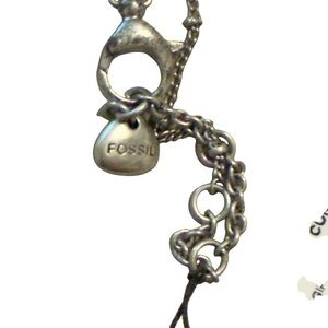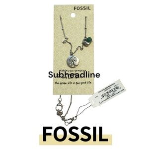 ➦Fossil Silver Necklace with Green Accents