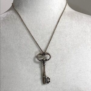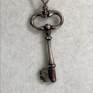 Elegant silver key pendant on a fine chain. Ideal for any outfit.