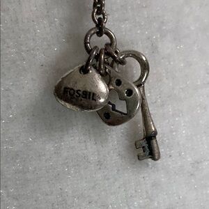 Fossil Silver Skeleton Key Crystal Necklace
