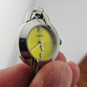 Fossil Silver Tone Bracelet Watch Bright Yellow Dial ESB-2427 Project Needs TLC