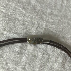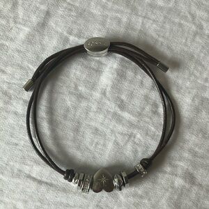 Fossil: Silver Tone Heart Charm Bracelet- Faux Leather Adjustable bracelet
