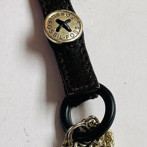 Fossil Silver Tone Necklace Braided Chunky Chain Leather Cord Closure Boho