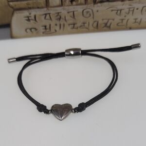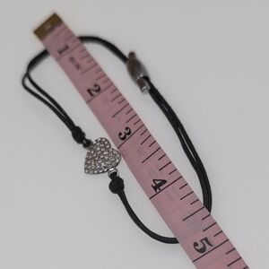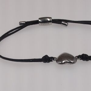 This elegant Fossil bracelet showcases a dazzling silver heart charm adorned with sparkling crystals, beautifully contrasted by a sleek black adjustable cord. Its minimalist design ensures versatility, making it an ideal accessory for any occasion.