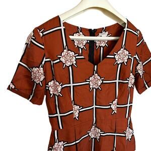 -Description: Fossil | Size 4 Galaxy Solar System Dress Burnt Orange Short Sleeve Striped, In great condition! 100% Silk