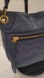 Chic Fossil shoulder bag in slate blue leather. Features a front zip pocket and gold-tone accents. Ideal for daily wear. Pristine condition. The weathered look gives it character.