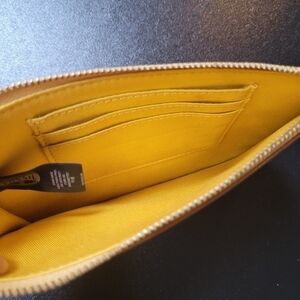 Fossil Slim Tan Leather Card Holder Zipper Pouch