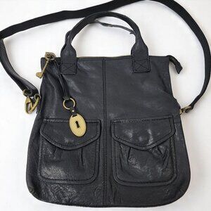 Fossil Slouchy Black Leather Crossbody Tote Bag | Boho Minimalist Everyday Purse