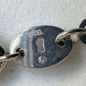 Genuine Fossil bracelet featuring stainless-steel open oval links and smokey-brown faceted resin pieces with a geometric internal pattern. Stamped STEEL and FOSSIL. Adjustable length with a sturdy lobster clasp. Modern, neutral, and easy to style with just about anything!