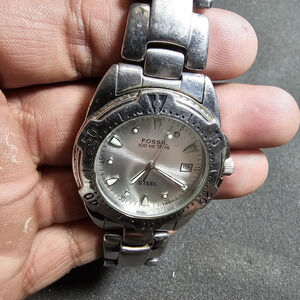 Fossil Steel Mens Quartz Analog Watch FS-2557 Stainless Steel Date Just Working sjows signs of heavy wear such as scratches see pictures for reference