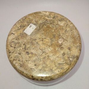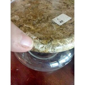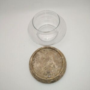 Fossil Stone Marble Top Clear Glass Jar from Pakistan.