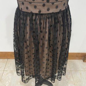 This Fossil strapless black and beige dress with polka dots is the perfect party dress! 100% polyester. Liner/slip underneath. Excellent pre-owned condition.