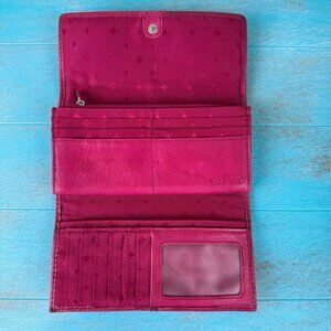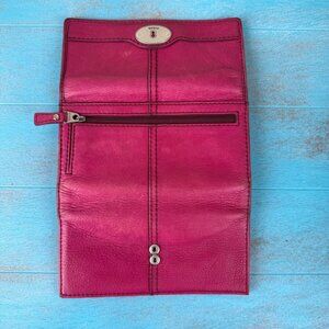 Vintage Fossil wristlet and Maddox pink leather wallet combination. Perfect for organizing your essentials with style and elegance.