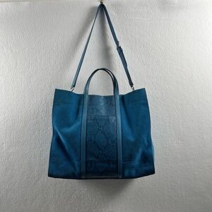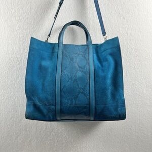 Fossil Suede and Leather Lagoon Blue Carmen Tote Shopper Purse Bag - no key