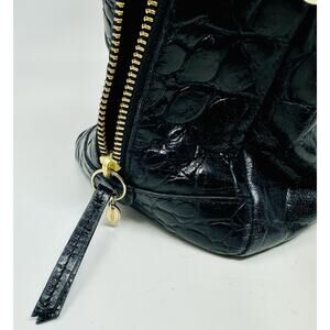 Fossil Sydney Black Croc Embossed Leather Satchel Handbag Crossbody Purse