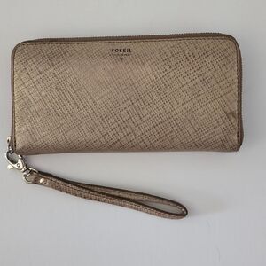 Fossil Sydney Clutch Wallet Rose Gold Leather Zip Around