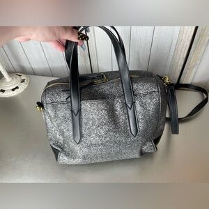 Fossil Sydney Gunmetal & Black Glitter Satchel Crossbody Shoulder Bag