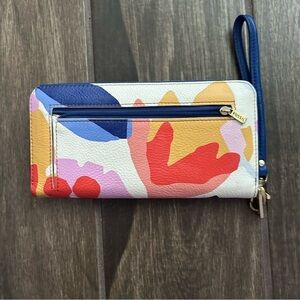 Fossil Sydney Leather Wristlet Leaf Print Zip Around Wallet