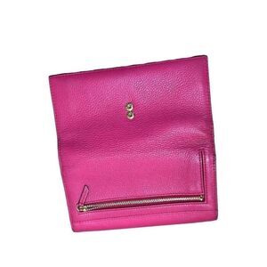 Super cute trifold leather wallet, snap closure, cc, cash and coin slots, signature logo and brass hardware