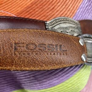 Fossil Sz Small Brown Silver Leather Concho Belt