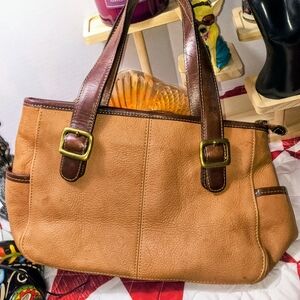 Fossil Tan & Brown Leather Project Bag Needs External Cleaning Interior Good