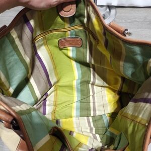 Fossil Tan Canvas And Brown Leather Strap Shoulder Tote Bag