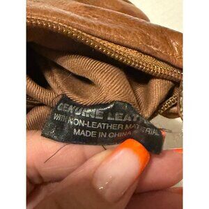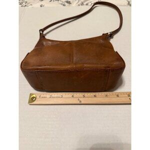 Fossil Tan Genuine Leather Shoulder Hobo Handbag Purse 6X8 Exterior Wear