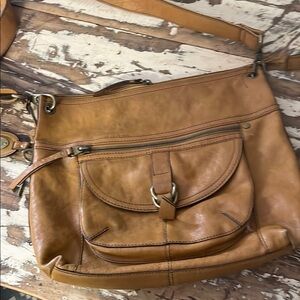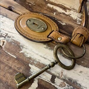 Fossil Tan Leather Crossbody Bag with Adjustable Strap