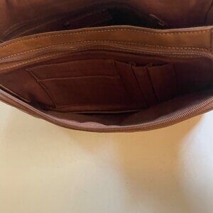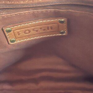 Fossil Tan Leather Crossbody Shoulder Bag With Adjustable Strap & Front Pockets