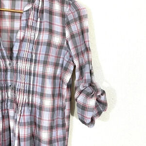 Fossil Tan Plaid Semi-Sheer Shirt Top Size Medium