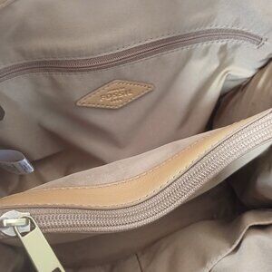 Fossil Tan Satchel with Striped Accent