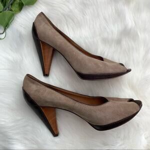 Fossil | Tan Suede Leather Peep Toe Pump Heels Size 9.5 Brown Open Toe Shoes