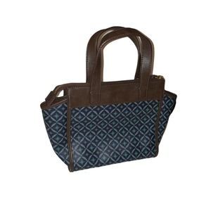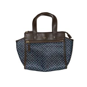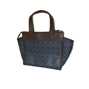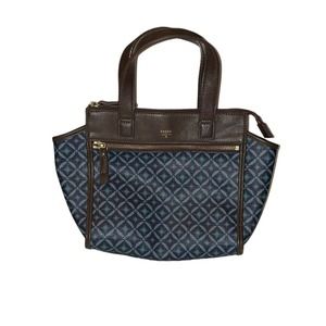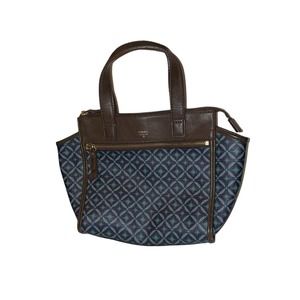 Fossil Tessa Signature Satchel Bag Purse Blue Brown Diamonds Geometric EUC