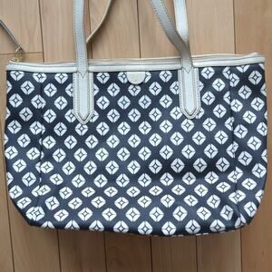 Fossil Tote Purse Black and White Exterior Pattern Tan Interior Fossil Bag