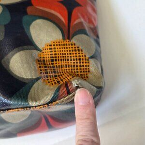 Fossil Tote Red Mod Floral Coated Canvas Keyper Bag Retro Boho Brown Leather