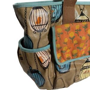 This fossil canvas coated bag is in excellent used condition. Super cute bird cages design.