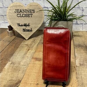 Fossil Travel Wallet red leather Zippered wristlet strap