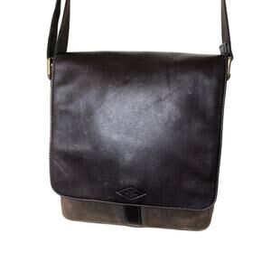 Fossil Trevor NS City Dark Brown Leather Messenger Style Crossbody Bag Unisex