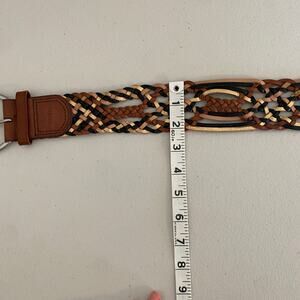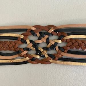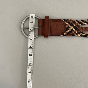 Fossil Tricolor Brown Black Gold Braided Leather O-Ring Silver Buckle Belt Small