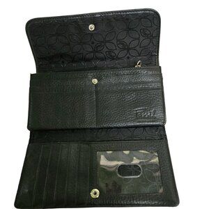 Fossil Trifold Black Genuine Leather Wallet With Snap Closure Card Slots