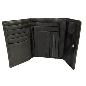 Fossil Trifold Wallet Black Genuine Leather Fold Over Travel Wallet Card Case