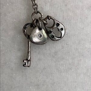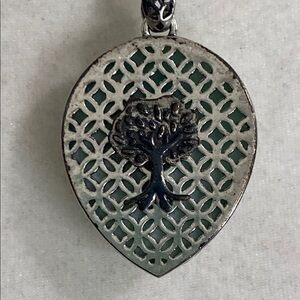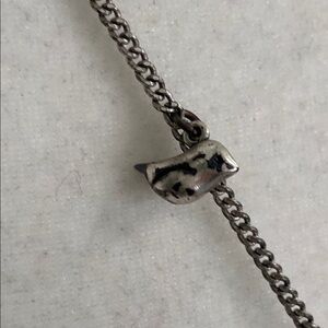 Fossil Turquoise Teardrop Stone Silver Necklace with Bird Charm Accent Vintage