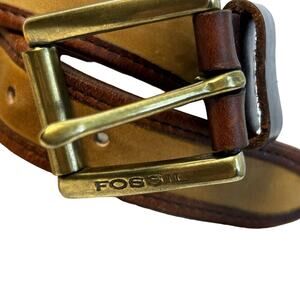 Fossil Two Toned Leather Belt with Gold Hardwear