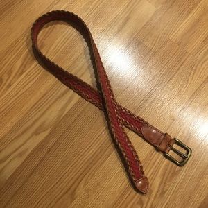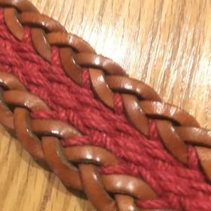 Fossil Brown Leather & Red Woven Cord Belt sz L. Actual length 38”. Great condition.