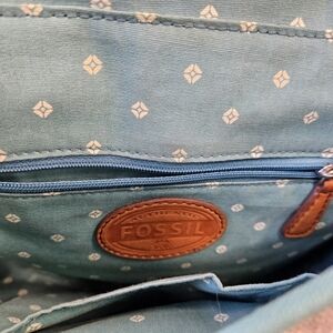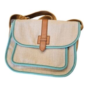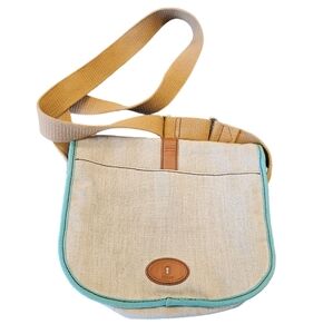 Fossil Vintage Cloth Fabric Khaki Teal Bag