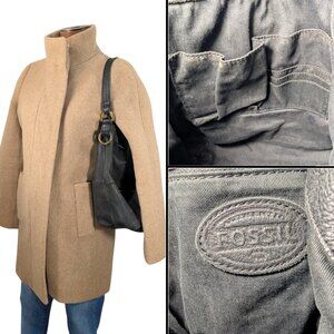Fossil Vickery Black Leather Drawstring Bucket Shoulder Bag Boho Purse