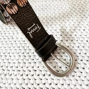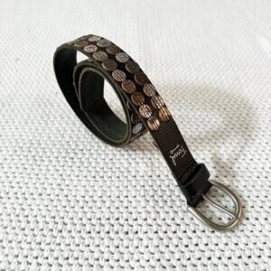 Fossil Vintage Black Leather Bronze Metallic Medallion Matte Geometric Belt M/L