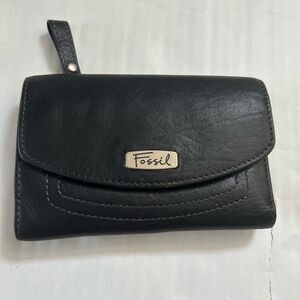 Fossil Vintage Black Leather Wallet with Silver Emblem
