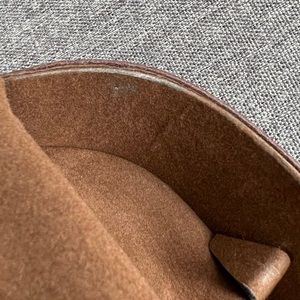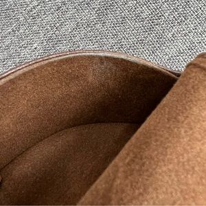 There are areas of wear on the inside lining and top edges. See pictures.