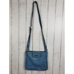 Fossil Vintage Crossbody Leather Bag Blue With zip and turning lock
